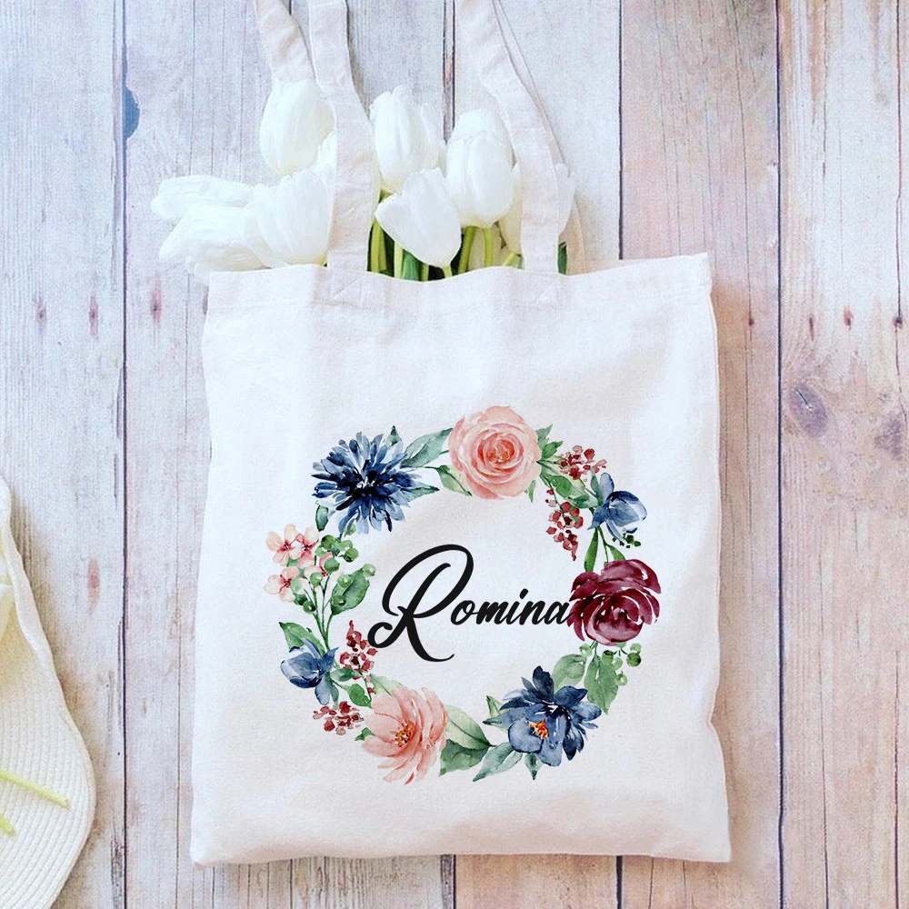 Amazon Com Personalized Floral Tote Bags Gift For Women W Name Text Date Customized Totes Bag For Beach Wedding Travel Work Custom Flower Shoulder Bag Custom Bachelorette Bridal Shower Birthday Gifts